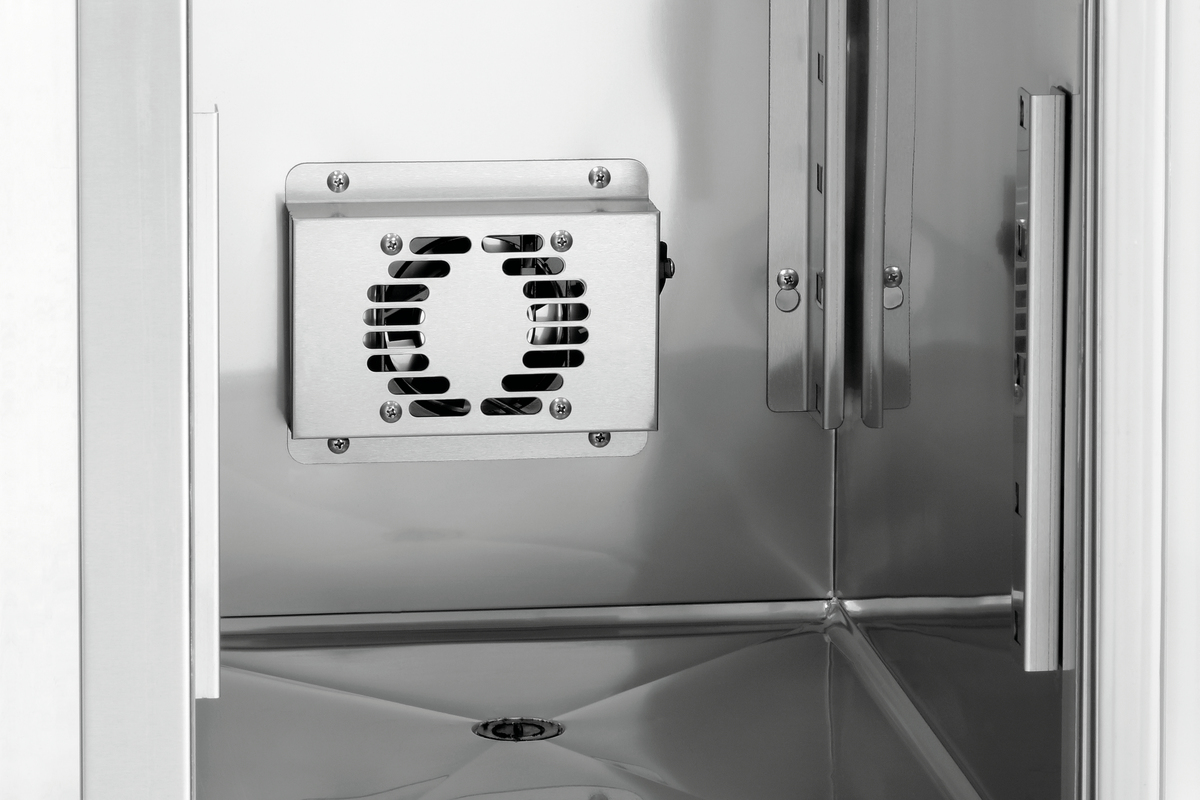 Statine vėsinimo sistema: Užtikrina patikimą temperatūros palaikymą diapazone nuo 0 °C iki 10 °C, apsaugodama produktus nuo išdžiūvimo.