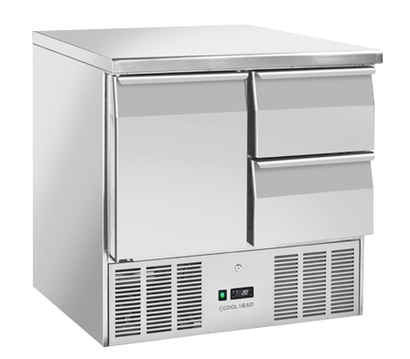 Cool Head CRD 92A – hibridinis šaldymo stalas (Saladette) su durimis ir stalčiais.