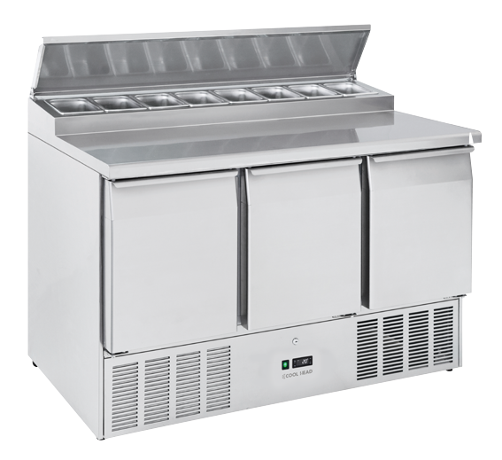 „Cool Head CRS 93A“ – tai galingas ir funkcionalus šaldymo stalas, sukurtas didelio našumo sumuštinių barams, kavinėms bei užkandinėms. Šis modelis sujungia tvirtą nerūdijančio plieno stalviršį su integruota, didelės talpos ingredientų zona, leidžiančia vienoje vietoje sutelkti visą gamybos procesą.