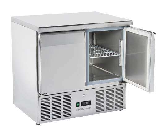 „Cool Head CRX 90A“ – tai kompaktiškas ir itin funkcionalus dviejų durų šaldymo stalas (saladete), pasižymintis švariu, minimalistiniu dizainu ir tvirtu nerūdijančio plieno stalviršiu. Šis modelis yra puikus universalumo pavyzdys, lengvai pritaikomas bet kurioje profesionalioje virtuvėje – nuo sumuštinių barų iki picerijų, kur reikalingas patikimas vėsinimas ir patogus darbinis paviršius.
