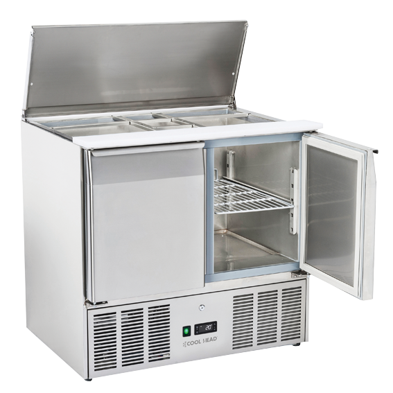 „Cool Head CR 90A“ – tai viena populiariausių dviejų durų šaldomų saladečių, sukurta dinamiškoms virtuvėms, kur ingredientų pasiekiamumas ir šviežumas yra kritiniai faktoriai. Šis modelis pasižymi atvira viršutine dalimi su nerūdijančio plieno dangčiu, todėl jis idealiai tinka greitam sumuštinių, salotų ar picų ruošimui tiesiai ant darbinio paviršiaus.