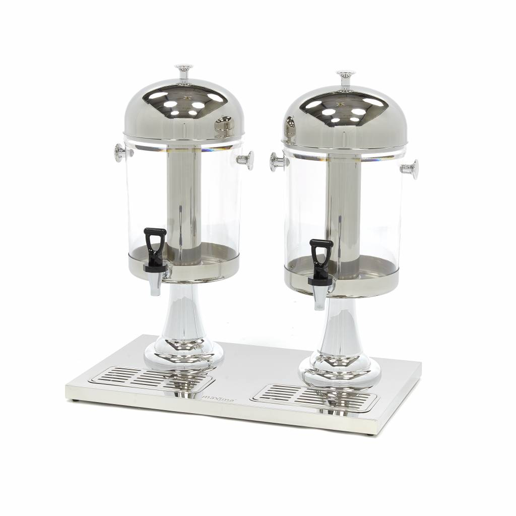 Stilingo dizaino gėrimų dozatorius skirtas sultims, limonadui, gaiviesiems gėrimams ar vandeniui patiekti. Puikiai tinka naudoti savitarnos zonose viešbučiuose, kavinėse, restoranuose ar greito maisto įstaigose. Skaidrūs konteineriai leidžia aiškiai matyti gėrimų pasirinkimą, o nerūdijančio plieno pagrindas užtikrina stabilumą ir profesionalią išvaizdą. Bendras talpumas – 16 litrų (2 x 8 L), tinkamas stiklinėms iki 15 cm aukščio.