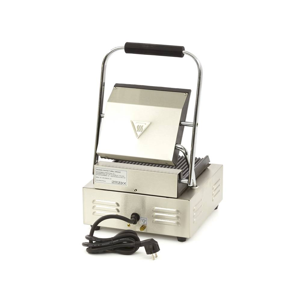Profesionalus kontaktinis grilis su ketaus grotuotomis kepimo plokštėmis. Tinka ne tik sumuštiniams ar panini, bet ir mėsos, žuvies bei daržovių patiekalams. Įrenginys turi lašėjimo padėklą aliejui surinkti ir komplektuojamas su valymo šepečiu.