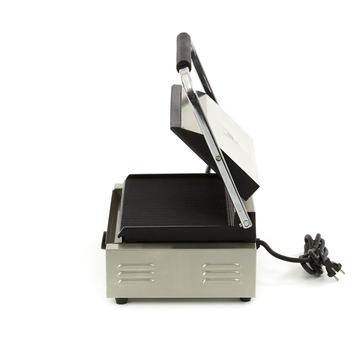 Profesionalus kontaktinis grilis su masyviomis ketaus grotuotomis kepimo plokštėmis. Puikiai tinka panini, dideliems sumuštiniams, mėsos, žuvies ar daržovių kepimui. Komplekte yra valymo šepetys, taip pat integruotas lašėjimo padėklas.