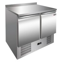 Profesionalus salotų stalas, su dviem varstomomis durimis. Pagamintas iš nerūdijančio plieno, tinkamas intensyviam darbui profesionaliose virtuvėse.