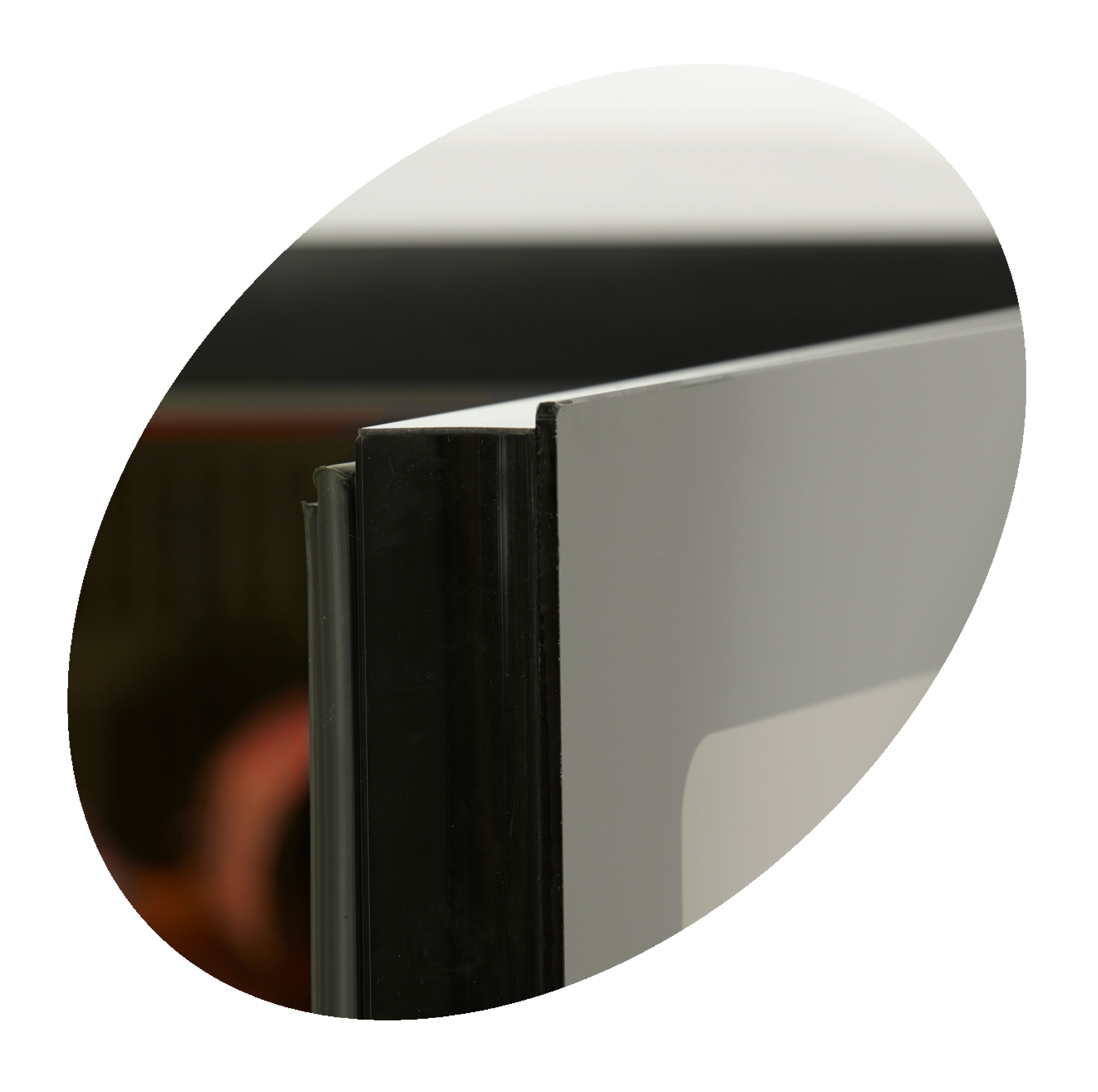 Dviejų zonų vyno šaldytuvas juodos spalvos su LED apšvietimu. Tinkamas vyno butelių laikymui ir atšaldymui.