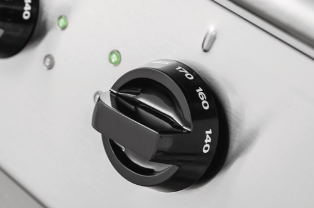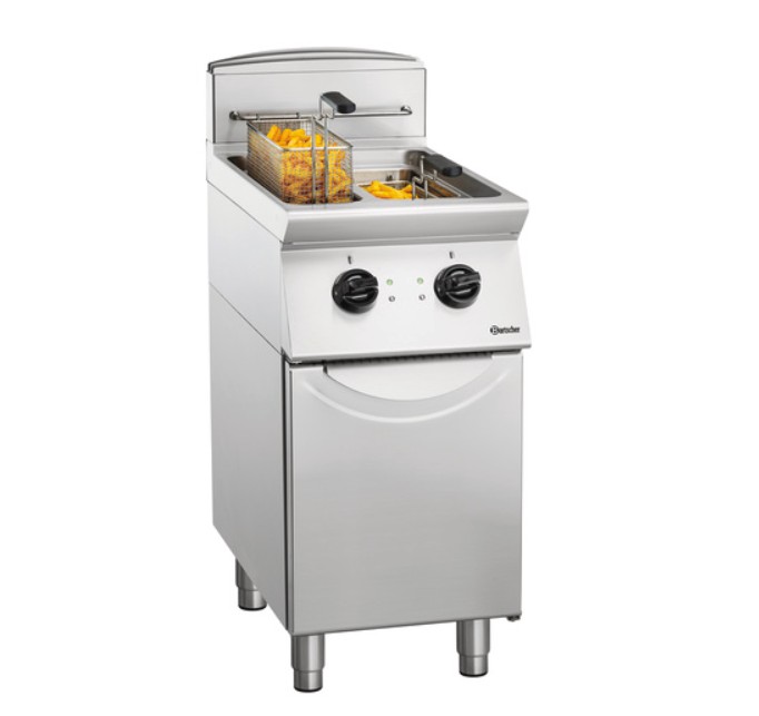 Profesionali elektrinė gruzdintuvė su 15 litrų talpos baku, skirta statyti ant spintelės. Pagaminta iš nerūdijančio plieno.