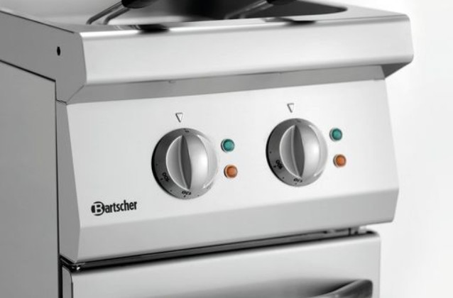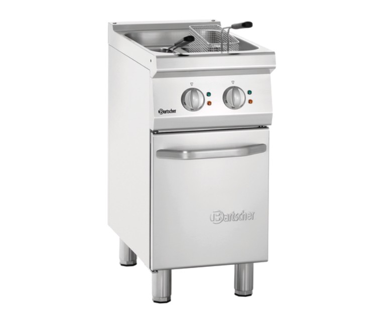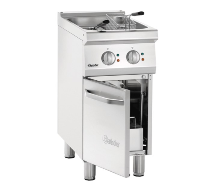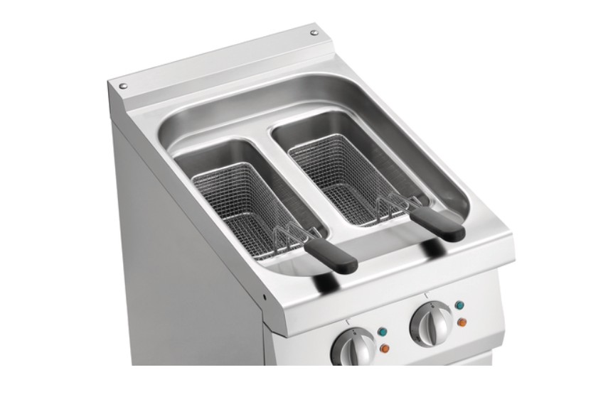 Profesionali elektrinė gruzdintuvė su 15 litrų talpos baku, skirta statyti ant spintelės. Pagaminta iš nerūdijančio plieno.
