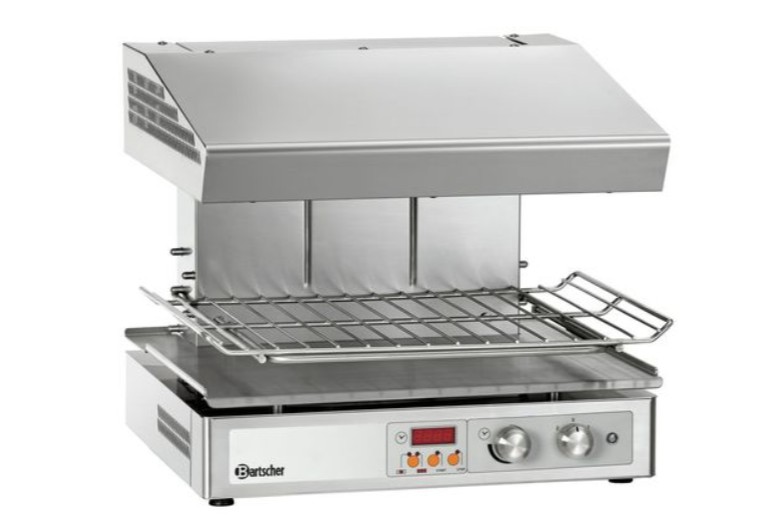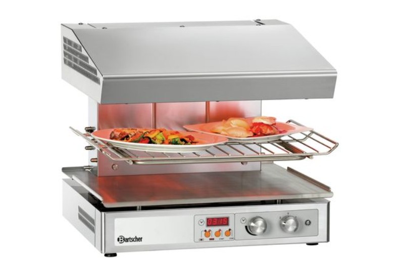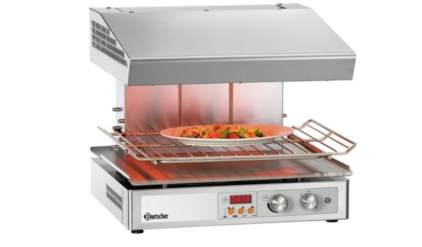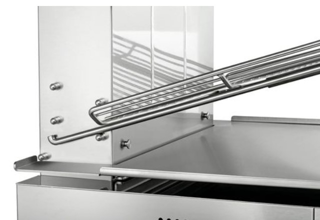 Profesionalus salamanderis iš nerūdijančio plieno su trimis infraraudonųjų spindulių šildymo elementais. Komplekte nerūdijančio plieno laikiklis prie sienos tvirtinti.