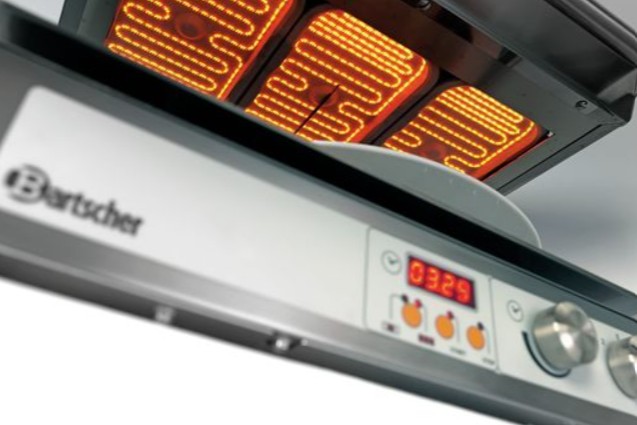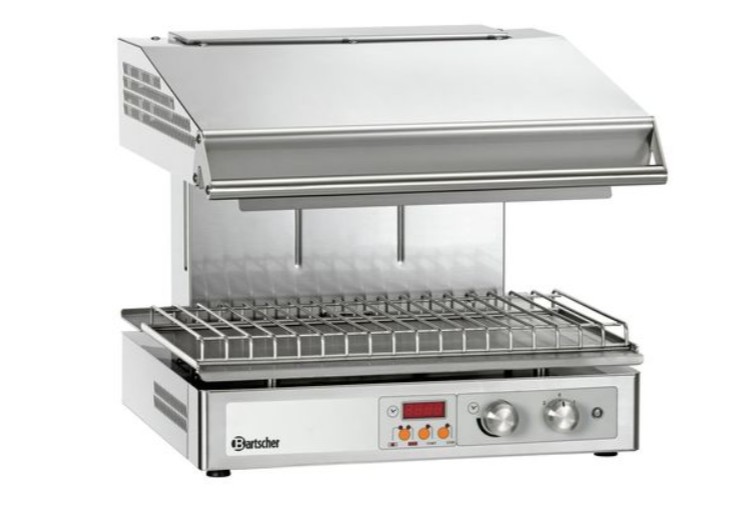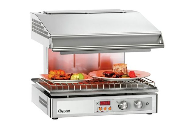 Profesionalus salamanderis iš nerūdijančio plieno su trimis infraraudonųjų spindulių šildymo elementais. Komplekte nerūdijančio plieno laikiklis prie sienos tvirtinti.