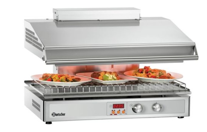 Profesionalus salamanderis iš nerūdijančio plieno su keturiais infraraudonųjų spindulių šildymo elementais. Komplekte nerūdijančio plieno laikiklis prie sienos tvirtinti.