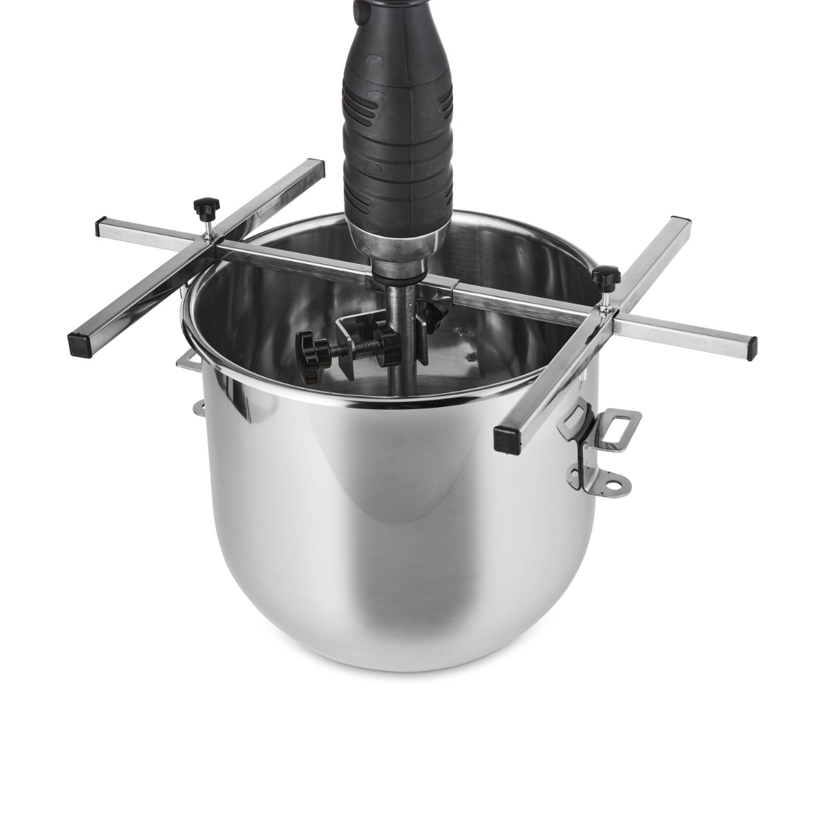 Praktiškas ir patikimas priedas, skirtas naudoti su MAXIMA rankiniais blenderiais. Laikiklis užtikrina stabilų blenderio pritvirtinimą prie didelio dubens, todėl galima patogiai ir saugiai dirbti laisvomis rankomis. Tai leidžia lengvai apdoroti didelius kiekius produktų be nuolatinio prietaiso laikymo rankoje.
