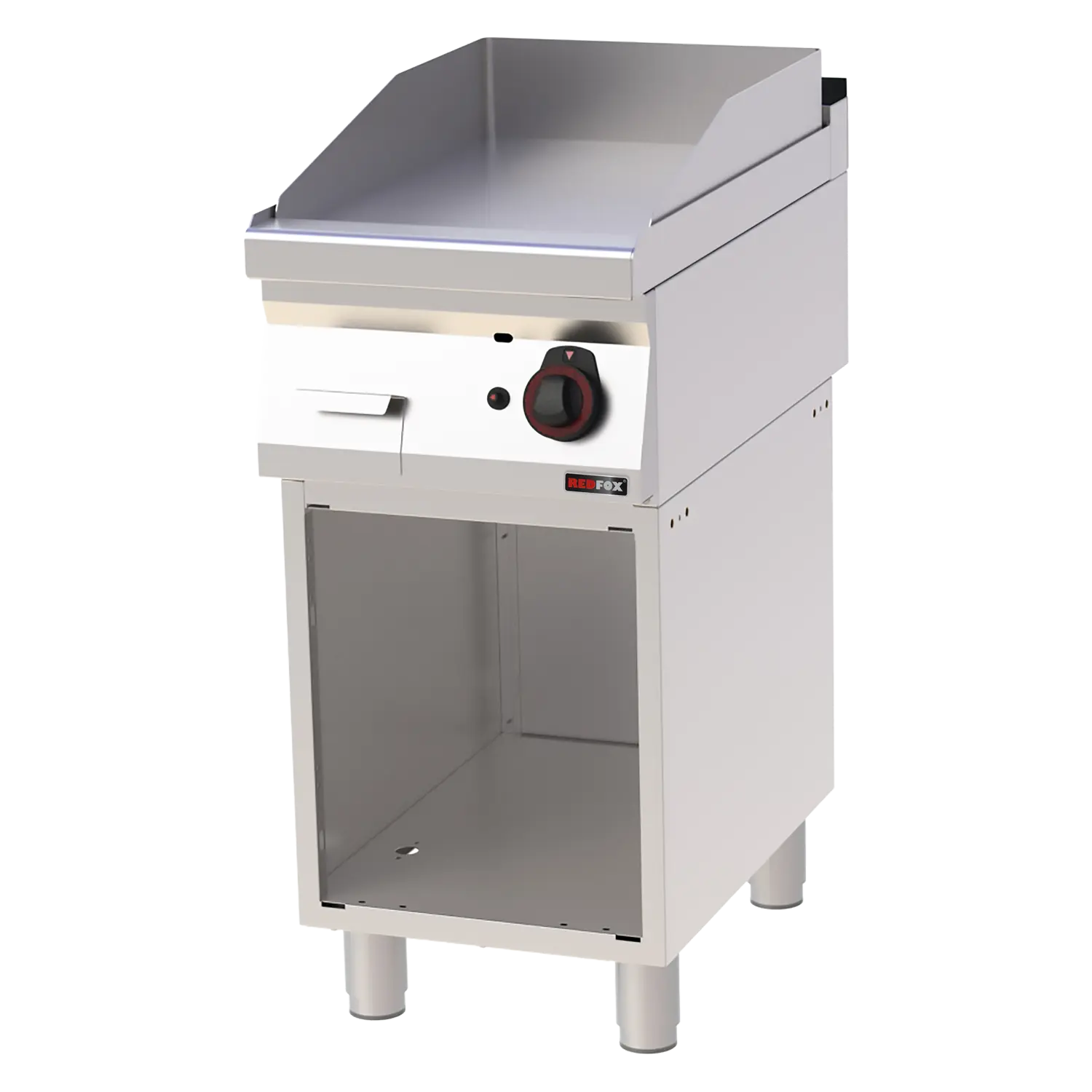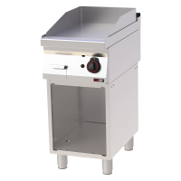Profesionali pastatoma dujinė grilio plokštė su lygiu nusmėliuotu paviršiumi. Pagaminta iš AISI 304 nerūdijančio plieno su AISI 430 apdaila. Įrengta riebalų surinkimo talpa, nuimamas kraštas ir reguliuojamos kojelės.