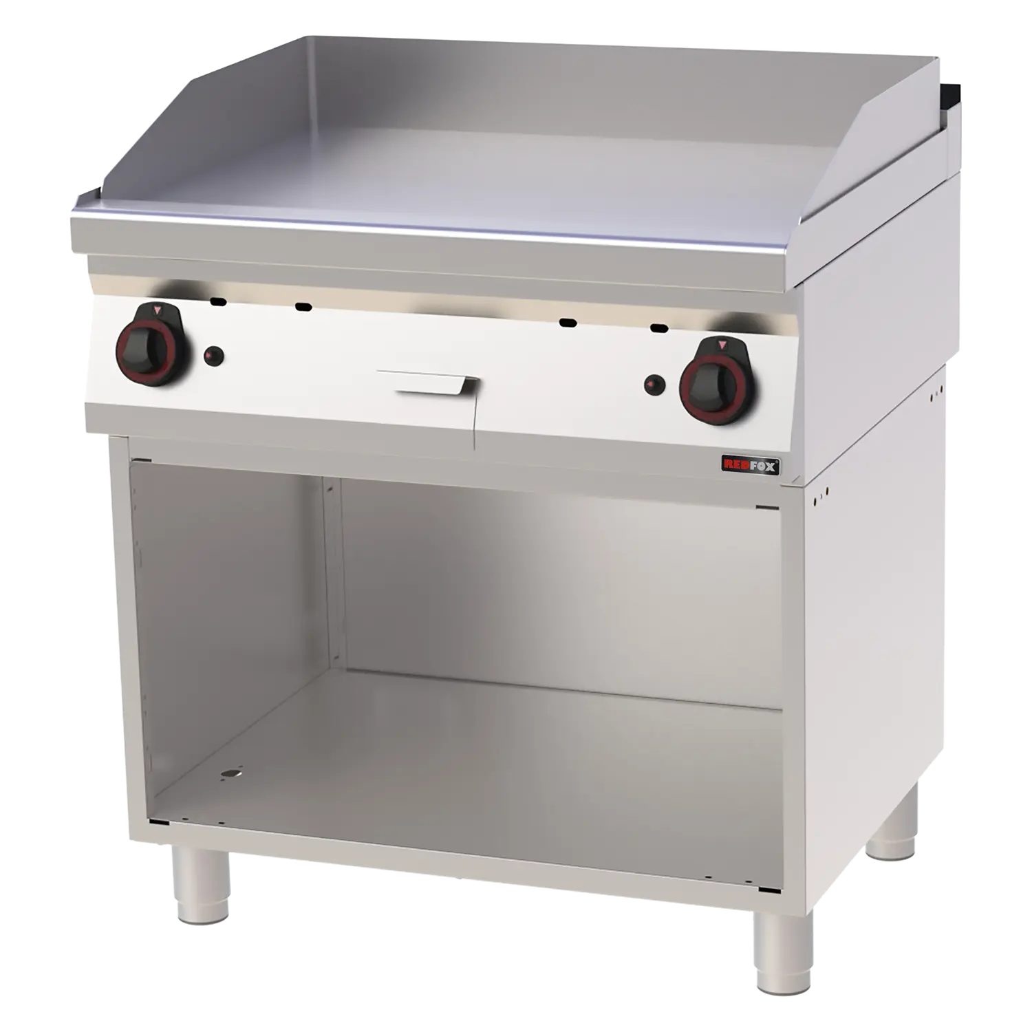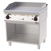 Profesionali dujinė grilio plokštė su chromu padengtu lygiu paviršiumi. Sumontuota ant atviro pagrindo, pagaminta iš aukštos kokybės AISI 304 nerūdijančio plieno su AISI 430 apdaila. Turi nepriklausomą temperatūros valdymą kiekvienai zonai bei nuotėkio indą riebalams.