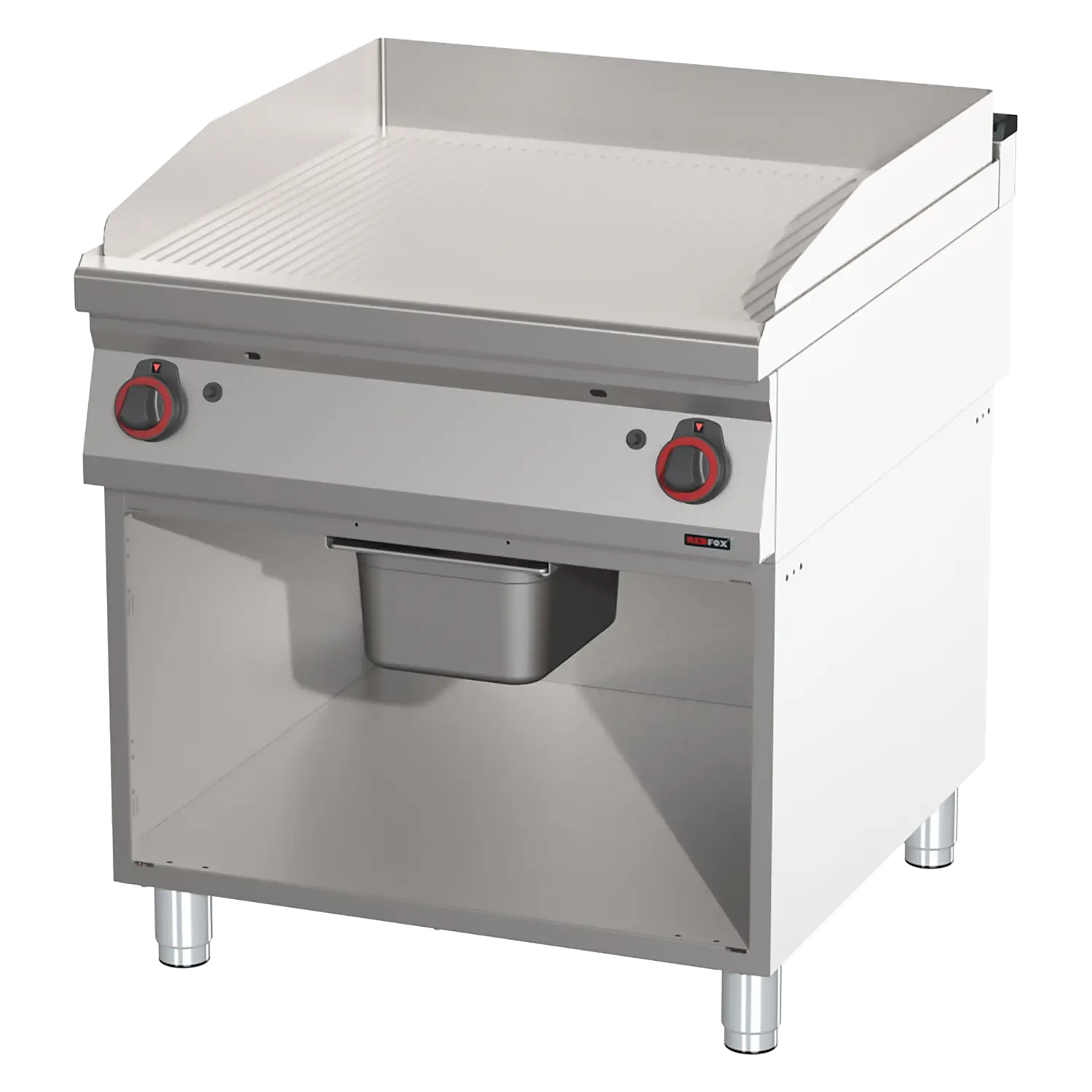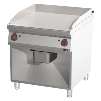 Galinga dujinė grioveliuota kepimo plokštė profesionaliai virtuvei. Pagaminta iš aukštos kokybės nerūdijančio plieno, su atskiromis šildymo zonų valdymo rankenėlėmis, riebalų surinkimo talpa ir lengvai prižiūrima konstrukcija.