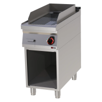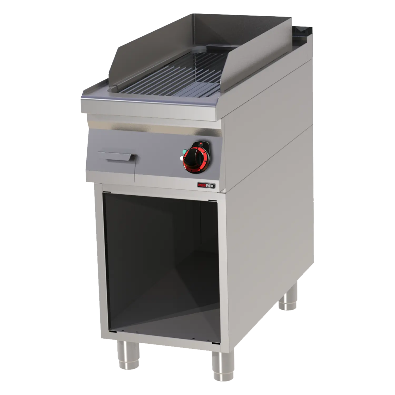 Profesionali elektrinė rifliuota fry-top kepimo plokštė, puikiai tinkanti mėsos, žuvies ar daržovių kepimui. Chromuotas paviršius leidžia lengvai prižiūrėti ir valyti įrenginį po darbo.