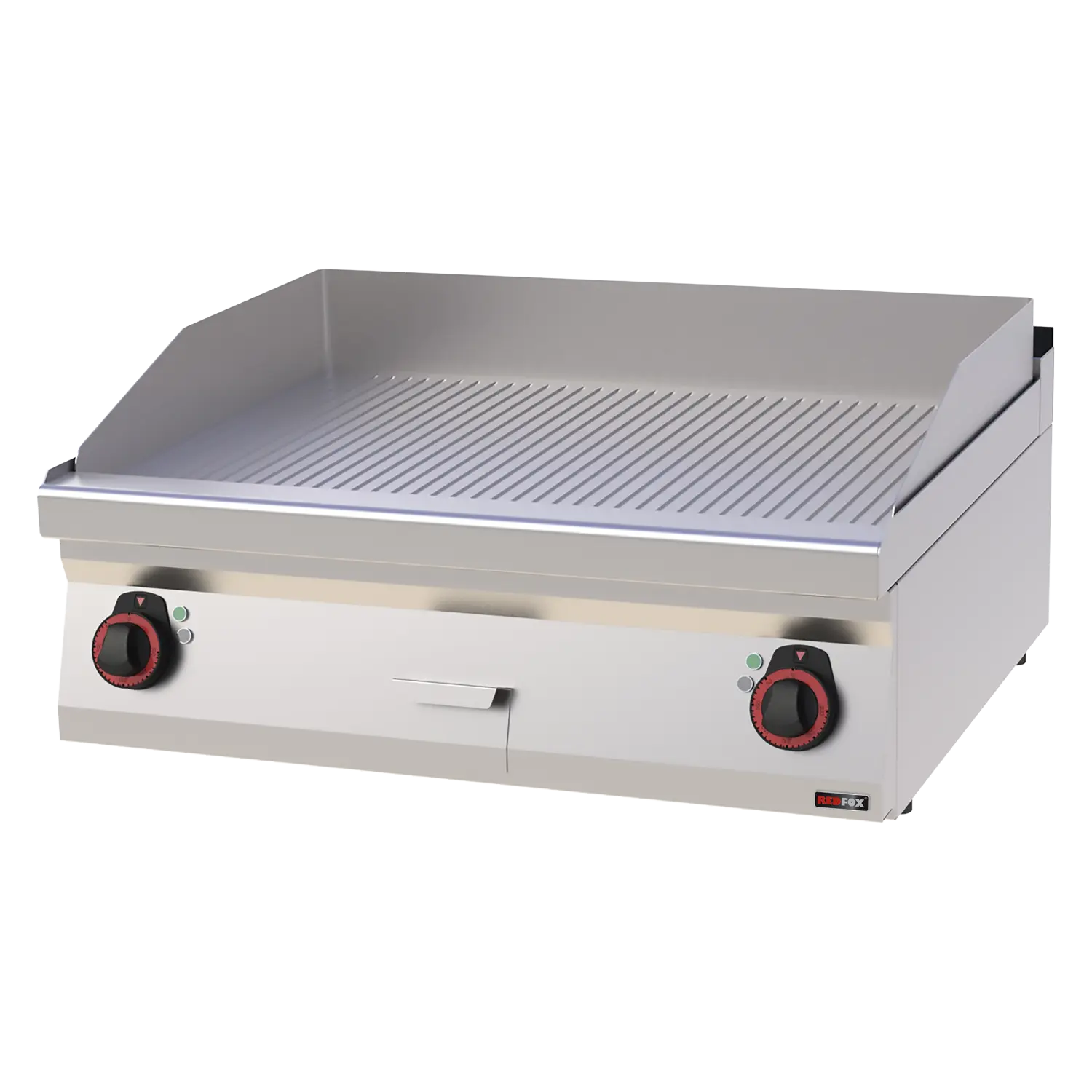 Profesionali stalviršio tipo elektrinė kepimo plokštė su grublėtu poliruoto chromo paviršiumi. Pagaminta iš AISI 304 nerūdijančio plieno viršaus ir AISI 430 apdailos. Turi riebalų surinkimo talpą, nuimamą kraštą ir nepriklausomas šildymo zonas.