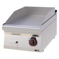 Profesionali stalviršio tipo elektrinė kepimo plokštė su grublėtu nusmėliuotu paviršiumi. Viršus pagamintas iš AISI 304 nerūdijančio plieno, apdaila – iš AISI 430. Įrenginys turi riebalų surinkimo talpą, nuimamą kraštą, reguliuojamas kojeles ir saugos termostatą.