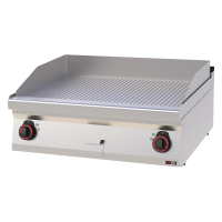 Profesionali stalviršio tipo elektrinė kepimo plokštė su grublėtu, nusmėliuotu paviršiumi. Pagaminta iš AISI 304 nerūdijančio plieno viršaus ir AISI 430 apdailos. Turi riebalų surinkimo talpą, nuimamą kraštą ir atskirai valdomas šildymo zonas.