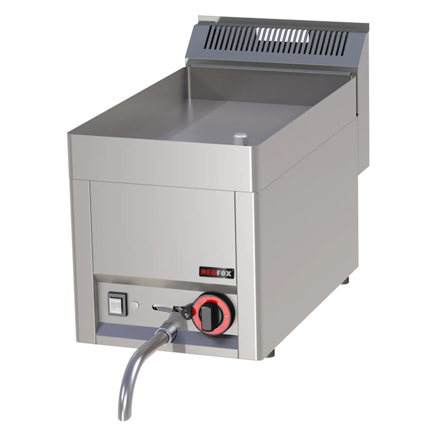 Kompaktiška elektrinė rifliuota kepimo plokštuma skirtas profesionaliam naudojimui. Įrenginys turi nerūdijančio plieno korpusą, integruotą riebalų surinkimo stalčių ir temperatūros valdymą. Puikiai tinka mėsai, daržovėms ar jūros gėrybėms kepti