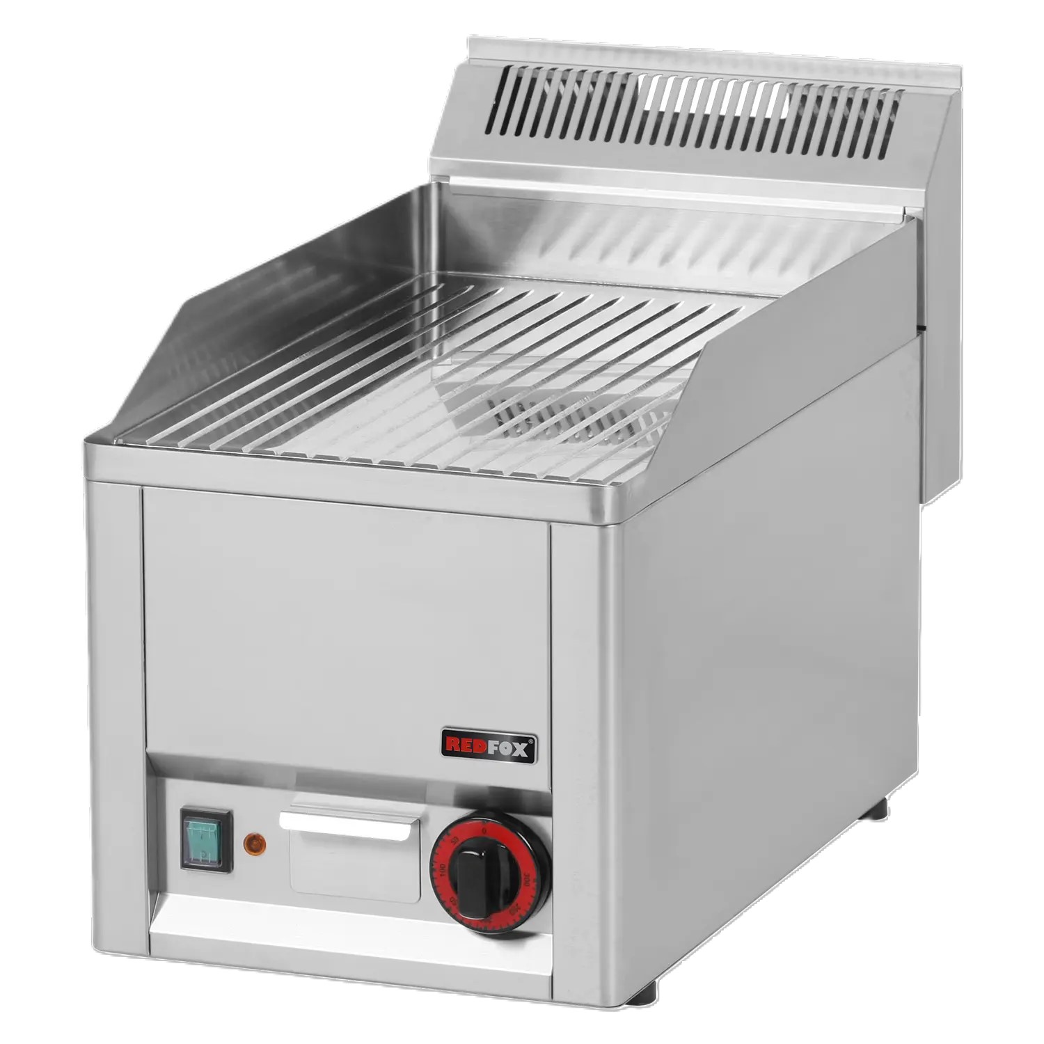 Profesionali stalviršio tipo elektrinė kepimo plokštė su grioveliais, skirta intensyviam naudojimui virtuvėje. Pagaminta iš patvaraus AISI 430 nerūdijančio plieno, turi riebalų surinkimo indą, reguliuojamas kojeles ir vienodą įkaitimą. Su IPX4 apsauga ir šildymo indikatoriumi.