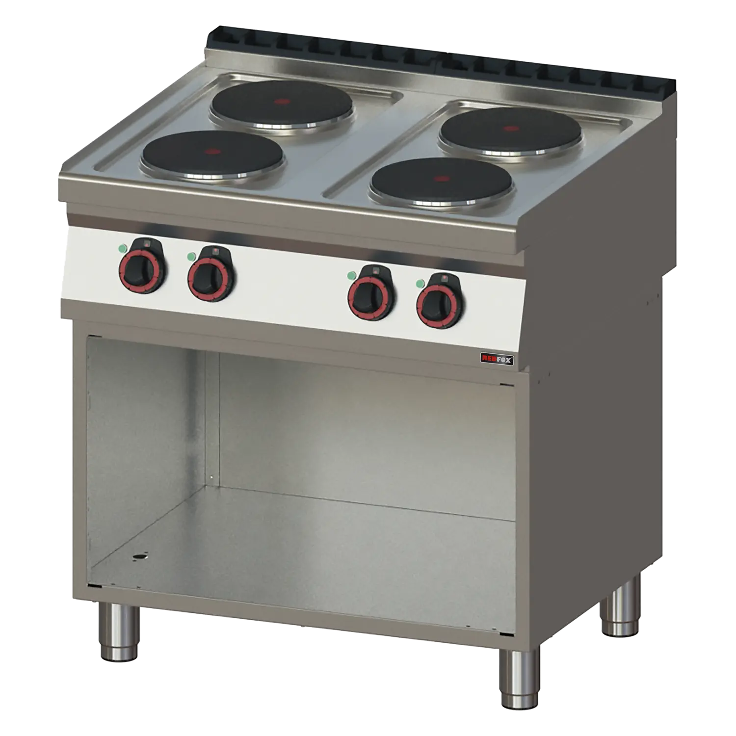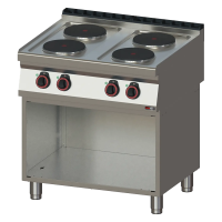 Elektrinė profesionali viryklė su keturiomis galingomis kaitvietėmis ir pritaikyta naudoti ant spintelės. Nerūdijančio plieno korpusas, formuotas viršus ir IPX4 apsauga leidžia dirbti higieniškai ir patikimai