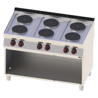 Profesionali elektrinė viryklė su šešiomis kaitvietėmis ir skirta montuoti ant spintelės arba darbo linijos. Nerūdijančio plieno konstrukcija, patogus formuotas paviršius ir IPX4 apsauga užtikrina efektyvų, praktišką ir higienišką darbą virtuvėje