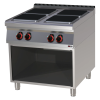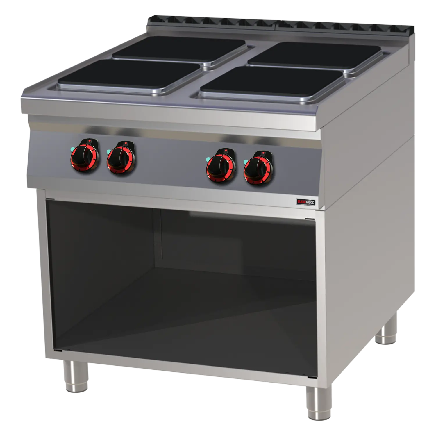Itin galinga elektrinė viryklė su 4 kvadratinėmis plokštėmis, skirta profesionalioms virtuvėms. Kiekviena zona turi 7 galios valdymo lygius ir vidinę apsaugą nuo perkaitimo. Prietaisas pagamintas iš nerūdijančio plieno, su patogia prieiga per priekinę dalį.