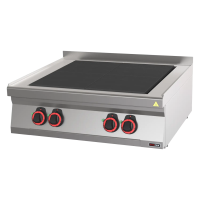 Kompaktiška elektrinė viryklė su keturiomis vientisomis kaitinimo plokštėmis, skirta montuoti ant stalviršio ar virtuvės modulio. Konstrukcija iš nerūdijančio plieno, patogus paviršius ir IPX4 apsauga užtikrina sklandų bei saugų darbą profesionalioje virtuvėje