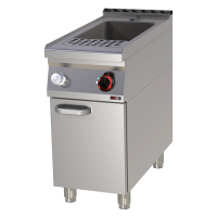 Kompaktiškas elektrinis makaronų virimo įrenginys su 33 litrų talpos vonia. Pagamintas iš nerūdijančio AISI 304 ir AISI 316 plieno, atsparaus sūriam vandeniui. Patogiam naudojimui – formuotas stalviršis, mechaninis vandens čiaupas ir IPX4 apsaugos klasė. Krepšelis neįtrauktas – įsigyjamas atskirai.