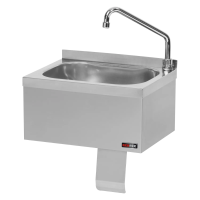Profesionali keliu valdoma kriauklė iš nerūdijančio plieno, skirta higienai palaikyti virtuvėse ar pramoninėse aplinkose. Kompaktiškas dizainas leidžia patogiai naudoti ribotoje erdvėje. Valdymas keliu užtikrina higienišką vandens tiekimą.