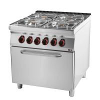 Profesionali dujinė viryklė su keturiais žalvariniais degikliais, išimama AISI 304 nerūdijančio plieno darbine dalimi, bei integruota GN 2/1 elektrine statine orkaite. Skirta profesionalioms virtuvėms.