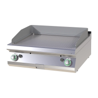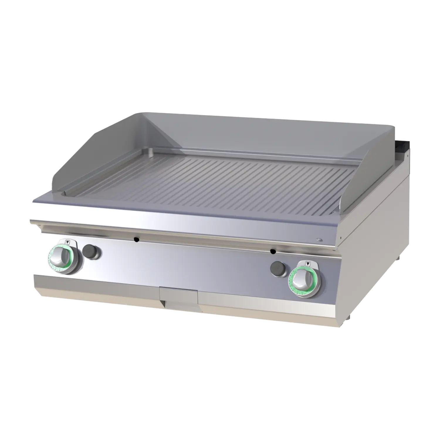 Profesionali stalviršio tipo dujinė kepimo plokštė su grublėtu paviršiumi. Pagaminta iš AISI 304 nerūdijančio plieno, leidžia nepriklausomai valdyti šildymo zonas, užtikrina tolygų įkaitimą ir turi riebalų surinkimo talpą.