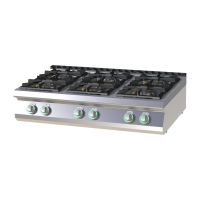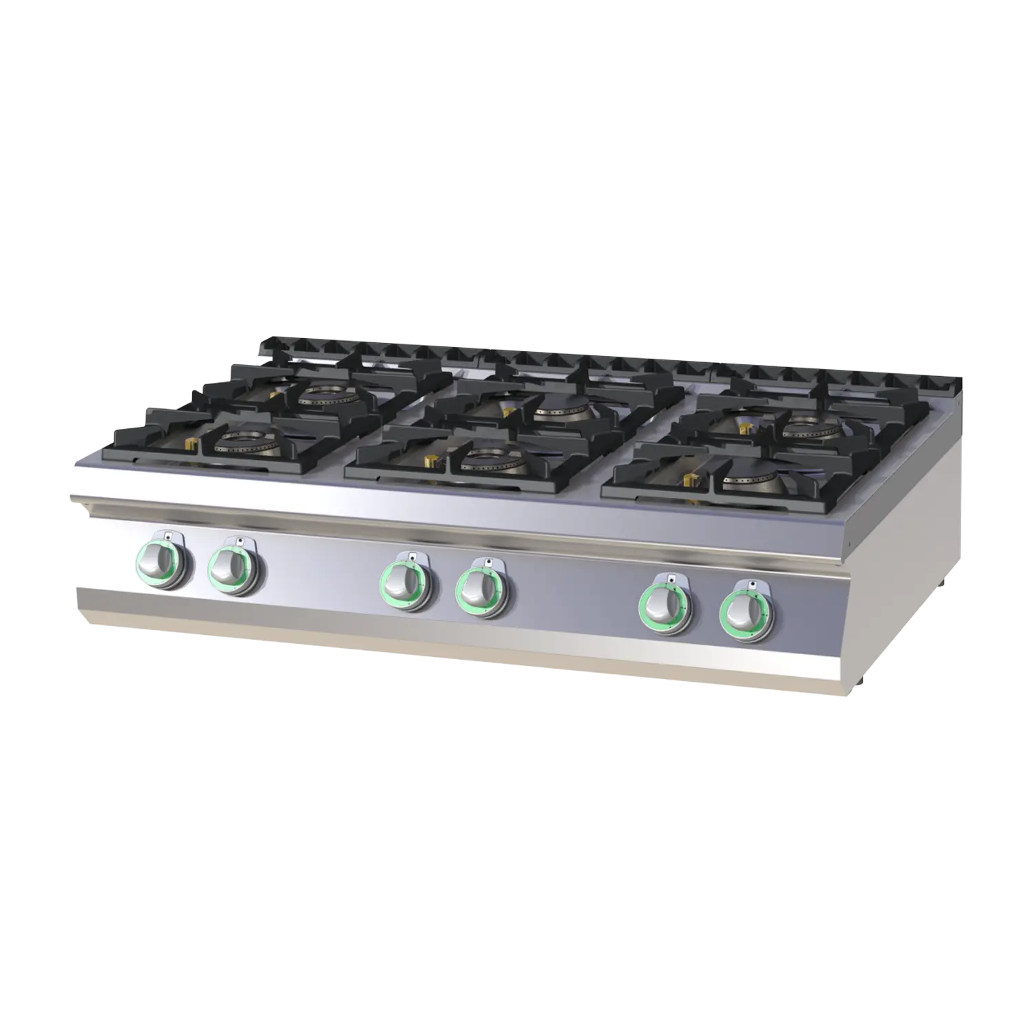 Profesionali stalviršio tipo dujinė viryklė su šešiomis klasikinėmis kaitvietėmis. Pagaminta iš AISI 304 nerūdijančio plieno, turi išimamus ketaus degiklius su vidiniu ir išoriniu degimu, ketaus groteles ir apsauginį termoelementą