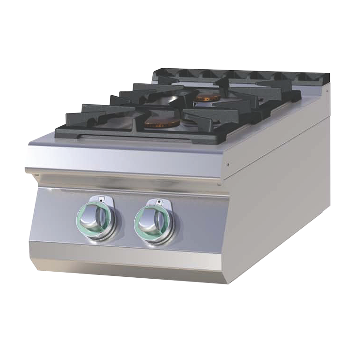Kompaktiška stalviršio tipo dujinė viryklė su dviem padidintos galios kaitvietėmis. Pagaminta iš AISI 304 nerūdijančio plieno, su žalvariniais nuimamais degikliais, ketaus grotelėmis ir apsauginiu termoelementu