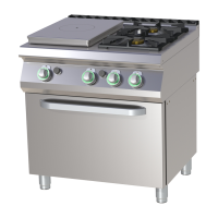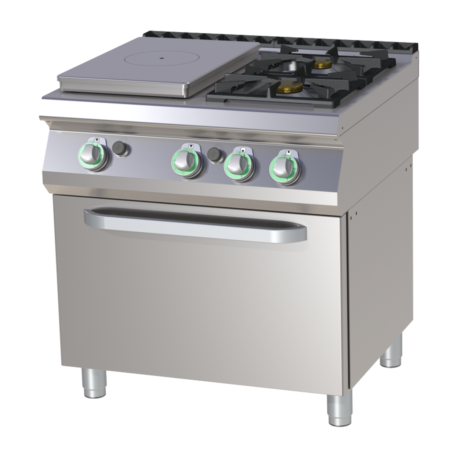 Profesionali stacionari dujinė viryklė su vientisu kaitinimo paviršiumi ir dujine orkaite. Pagaminta iš AISI 304 nerūdijančio plieno, turi ketaus groteles, patogų valdymą per priekinį skydelį, apsaugos termoporą ir patikimą piezo uždegimo sistemą.