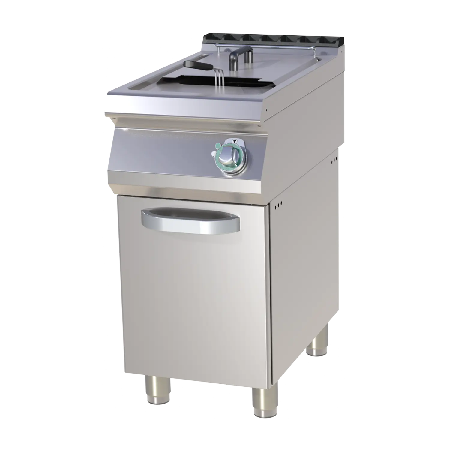 Profesionali elektrinė gruzdintuvė su 13 litrų talpos baku, skirta naudoti ant spintelės. Pagaminta iš aukštos kokybės AISI 304 nerūdijančio plieno, turi vientisą suformuotą stalviršį, kuris palengvina priežiūrą. Kaitinimo elementas sumontuotas bako viduje, užtikrina tolygų įkaitimą ir ilgą tarnavimo laiką. Komplektuojama su dangčiu ir krepšeliu.