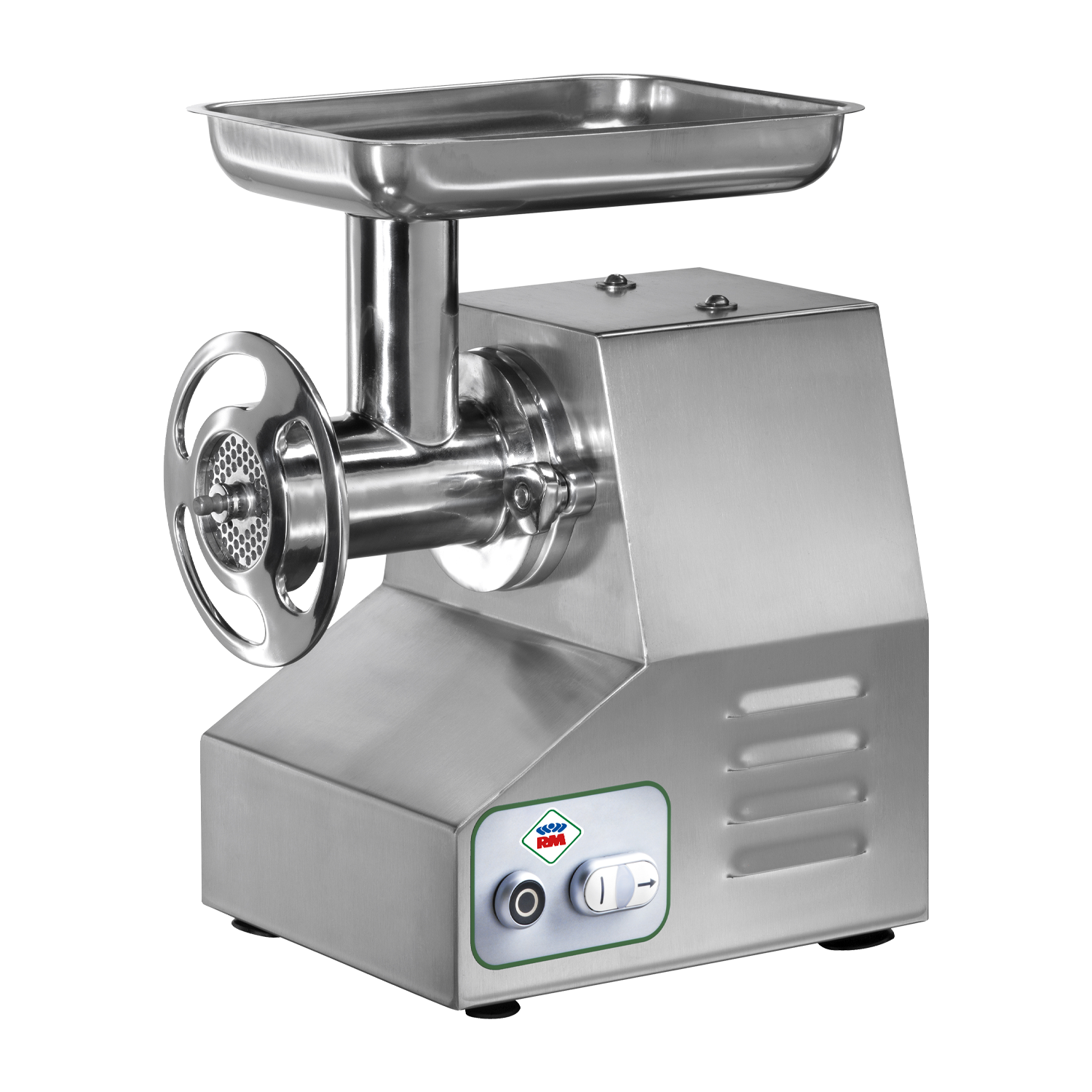 Profesionali elektrinė mėsmalė su viena malimo grupe ir išimama malimo galvute, skirta gamybos įmonėms. Pagaminta iš nerūdijančio plieno.