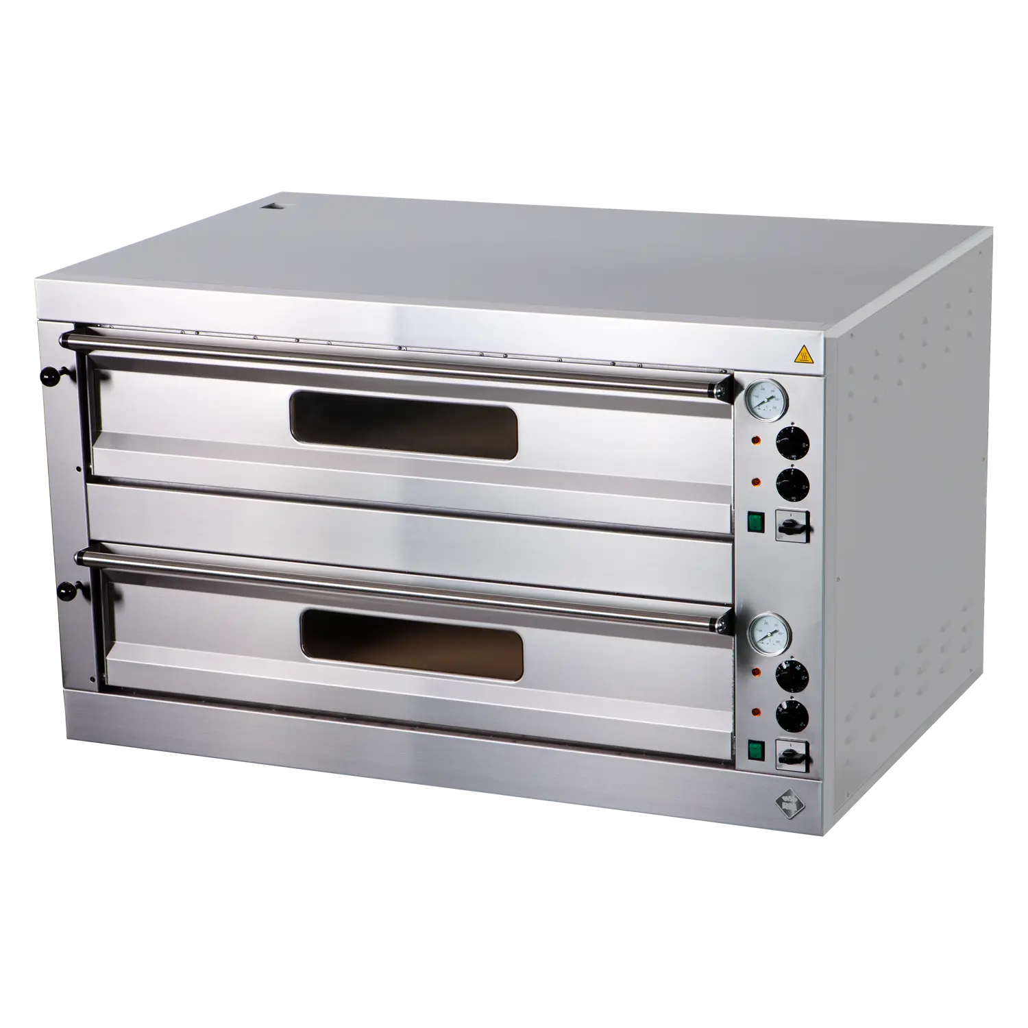 Profesionali elektrinė picos krosnis su dviem kameromis ir talpa dvylikai 33 cm skersmens picų. Pagaminta iš nerūdijančio plieno.