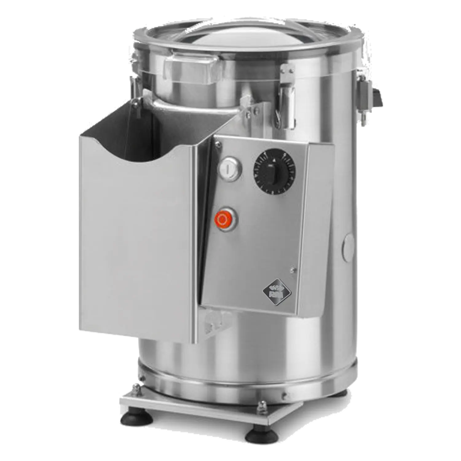 Profesionalus elektrinis bulvių lupimo aparatas, pagamintas iš nerūdijančio plieno, skirtas 100–150 kg per valandą apdorojimui. Komplekte yra 5 kg talpos indas.