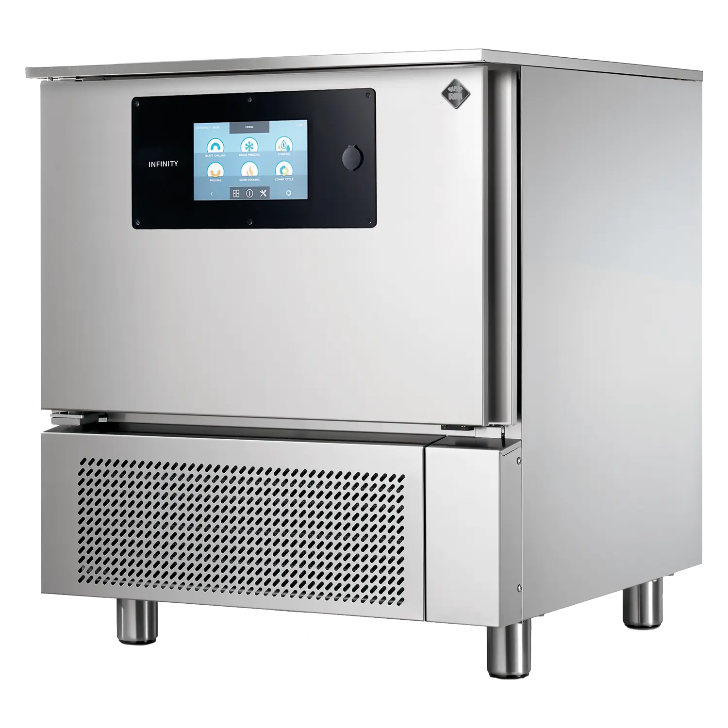 Profesionalus elektrinis šaldymo įrenginys su liečiamu 9 colių ekranu, skirtas 5 GN 1/1 indų talpai.