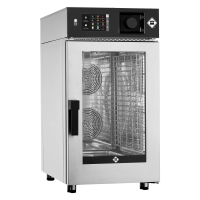 Profesionali kombinuota garinė krosnis SLIM formato, skirta maisto ruošimui ant 10 GN 1/1 dydžio skardų. Pagaminta iš AISI 304 nerūdijančio plieno, užtikrina aukštą patvarumą ir lengvą valymą. Valdymas vykdomas jutikliniu 7 colių ekranu ir mygtukais.