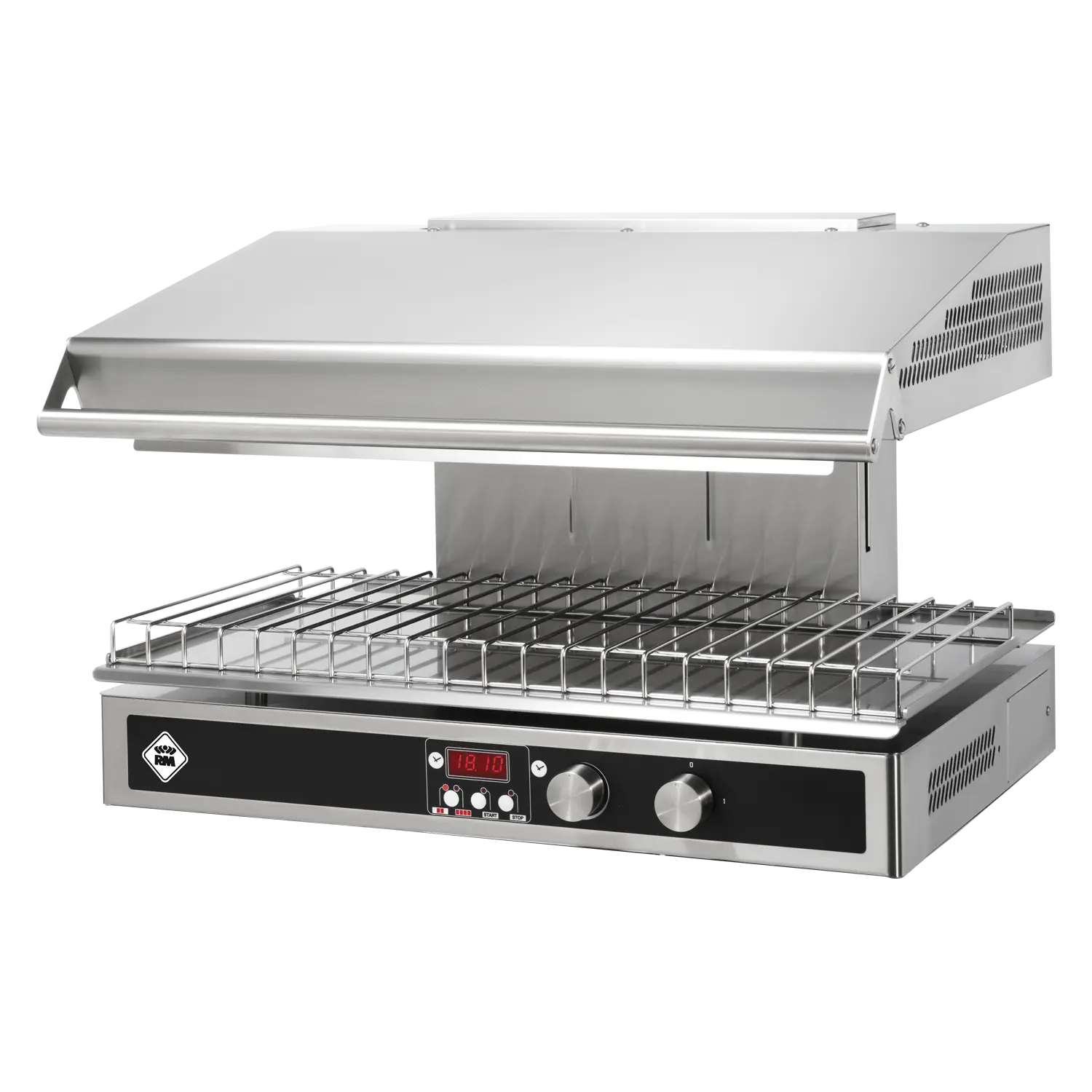 Profesionalus salamanderis iš nerūdijančio plieno su keturiais infraraudonųjų spindulių šildymo elementais ir skaitmeniniu valdymu. Viršutinė dalis nuolat slankioja su šildymo elementais, automatinis temperatūros valdymas, automatinis išsijungimas ir garsinis signalas. Komplekte yra laikiklis prie sienos tvirtinti bei nuimamas apatinis lentynėlis.
