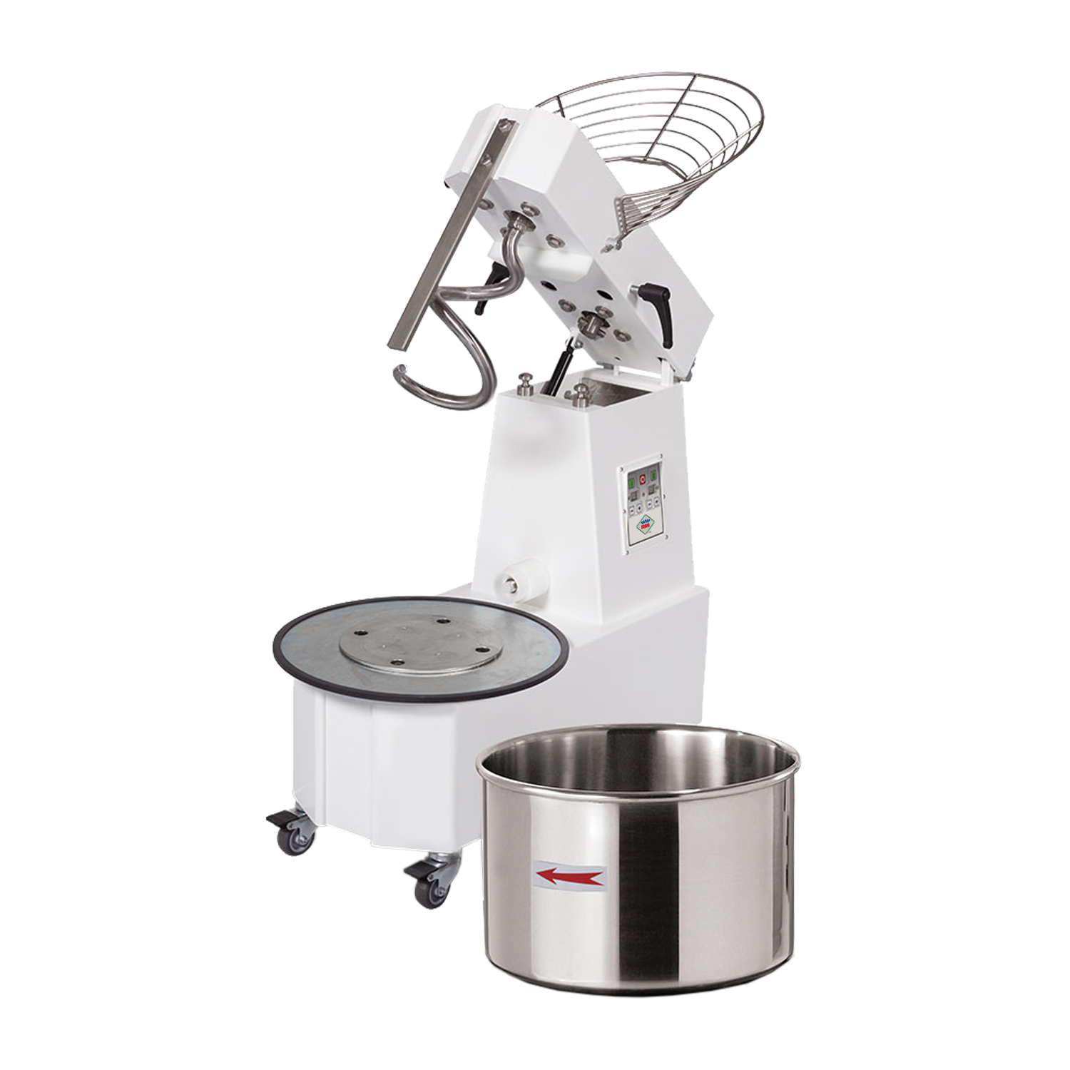 Profesionalus spiralinis maišytuvas su vienu greičio rėžimu ir 15 litrų talpos nuimamu dubeniu. Pagamintas iš nerūdijančio plieno.