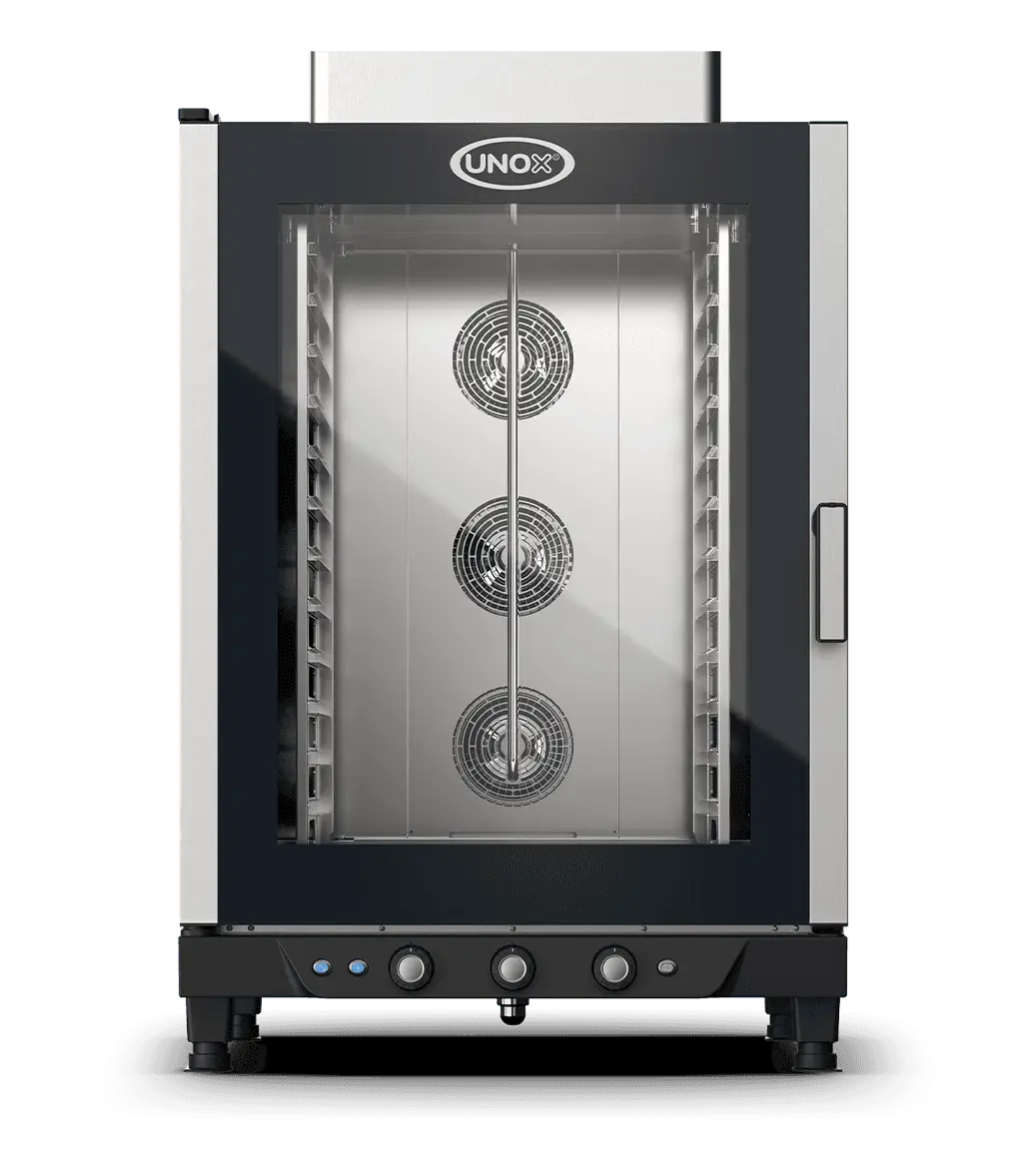 CHEFLUX™ MANUAL yra didelės talpos Unox dujinė konvekcinė krosnis su drėkinimo funkcija, skirta profesionalioms virtuvėms, kurios nori naudoti dujas kaip energijos šaltinį, bet reikalauja didelio našumo ir paprasto, rankinio valdymo.