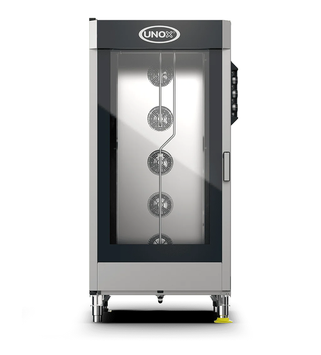 CHEFLUX™ MANUAL yra galinga ir talpi Unox elektrinė konvekcinė krosnis, skirta profesionalams, vertinantiems paprastumą, patvarumą ir didelius gamybos kiekius. Tai rankinio valdymo modelis, orientuotas į esminius gaminimo procesus: kepimą, skrudinimą ir garinimą, nenaudojant sudėtingos elektronikos.
