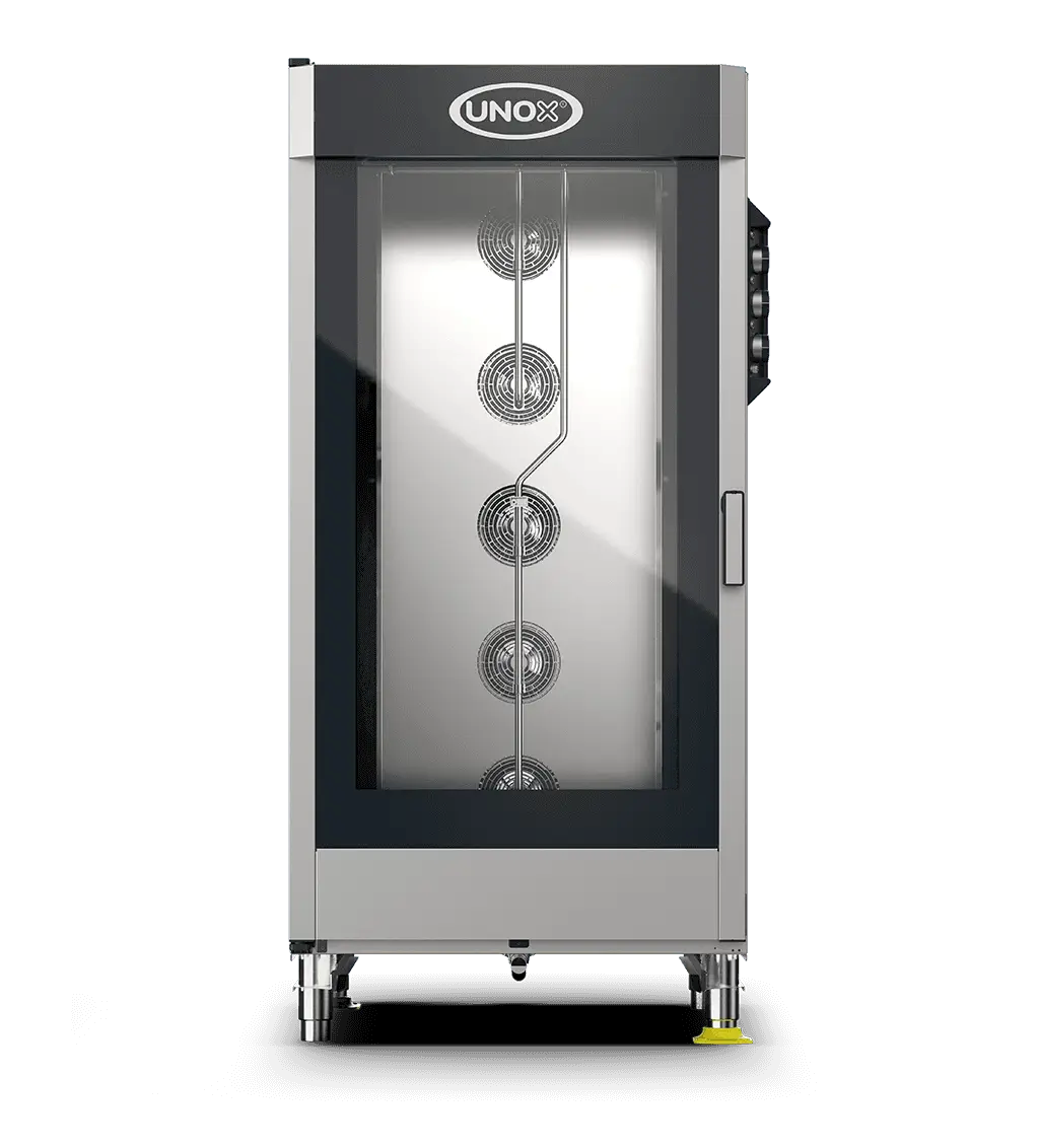 CHEFLUX™ MANUAL yra didelės talpos Unox elektrinė konvekcinė garo krosnis, skirta profesionalioms virtuvėms, kurioms reikalingas didelis našumas ir paprastas, rankinis valdymas. Šis modelis leidžia atlikti įvairius tradicinius gaminimo procesus, tokius kaip kepimas, skrudinimas, gaminimas garuose ir kepinių kepimas, naudojant analoginį valdymą be sudėtingų skaitmeninių programų.