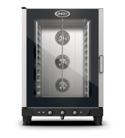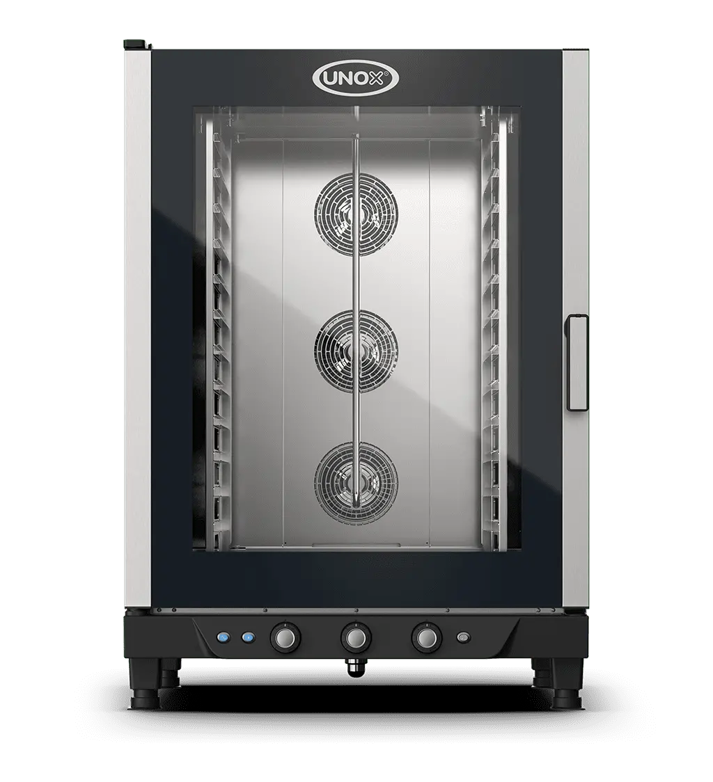 CHEFLUX™ MANUAL yra didelės talpos Unox elektrinė konvekcinė krosnis, sukurta didelės apimties maisto gaminimo operacijoms, pavyzdžiui, didelėms valgykloms, viešbučiams ar gamybos virtuvėms. Šis modelis pasižymi patvarumu ir paprastu, rankiniu valdymu, skirtu pagrindiniams gaminimo procesams: kepimui, skrudinimui ir drėgnam gaminimui.
