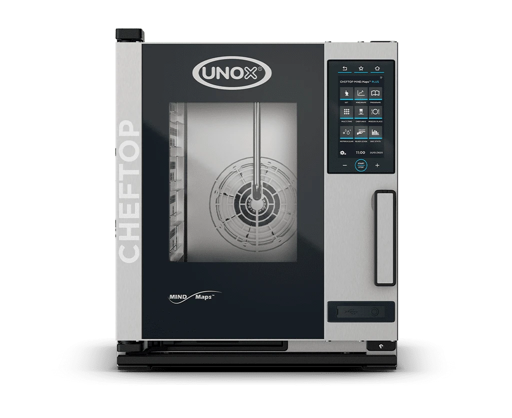 UNOX CHEFTOP MIND.Maps™ COMPACT PLUS yra idealus, profesionalus, stalviršio tipo sprendimas virtuvėms, kuriose kiekvienas centimetras yra kritiškai svarbus. Ši unikali krosnis sujungia pakankamą 5 GN 1/1 padėklų talpą su itin siauru 535 mm pločiu, todėl tai yra vienas efektyviausių erdvės atžvilgiu sprendimų rinkoje.